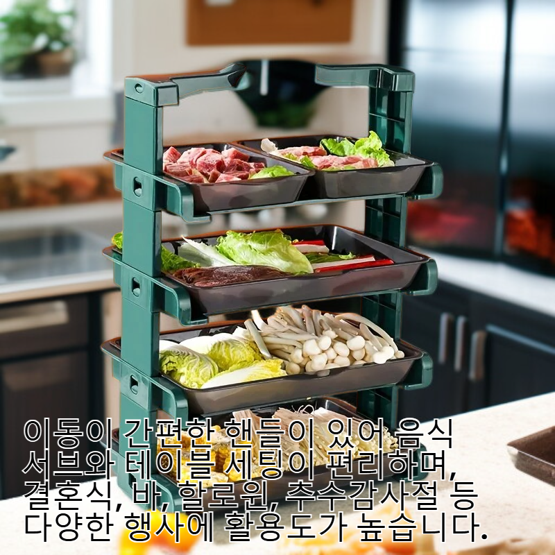 ● 다층 구조로 다양한 음식(바베큐, 케이크, 디저트 등)을 한 번에 담을 수 있어 가족 모임이나 파티에 완벽한 테이블웨어입니다.